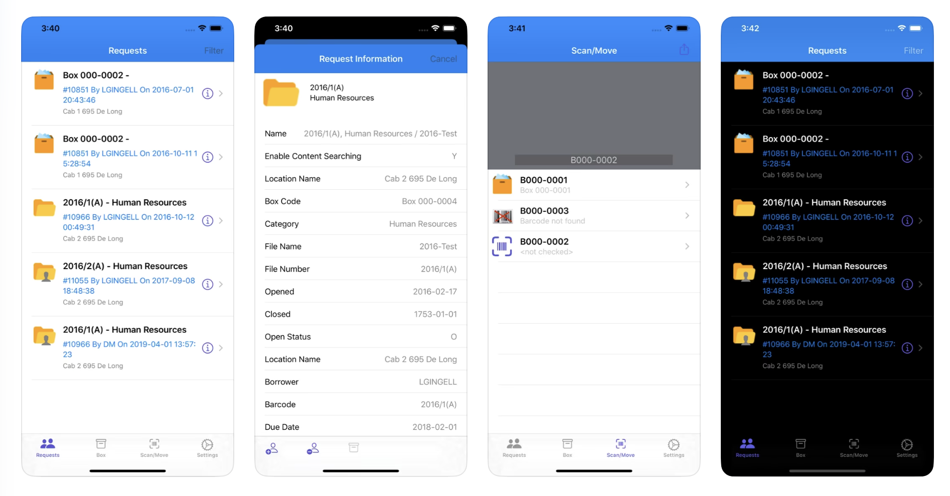 Whether delivering boxes or files to requestors or working away from a desk, administrators can simply scan barcodes to update file locations, complete requests, and record movements in real time. With just a few quick scans, files are marked as moved and requests are completed accurately and efficiently.